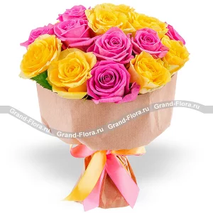 Карибский закат - букет из желтых и розовых роз