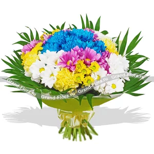 С любовью и нежностью - букет из кустовых хризантем, роз и альстромерий