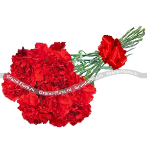 Пестрые мечты - букет из красных гвоздик и хризантемы