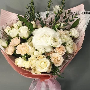Аромат нежности – букет из белых и розовых роз (50-60 см)