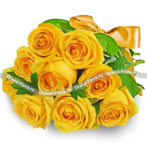 Летние грезы - коробка с желтыми розами и зеленой хризантемой