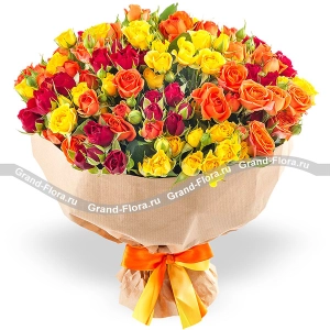 Пряности – букет из разноцветных кустовых роз