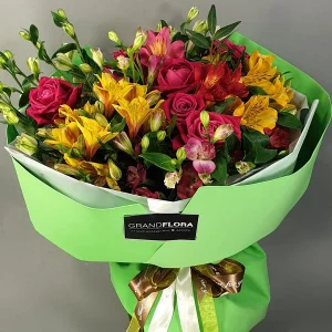 Летняя фантазия – букет из роз и альстромерий