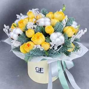 Мороз и солнце - коробка с кустовыми розами и нобилисом