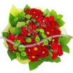 ДЕЛЮКС: хризантема кустовая красная - 7 шт., хризантема зеленая кустовая - 5 шт., роза красная кустовая - 6 шт., салал, фетр зеленый.
