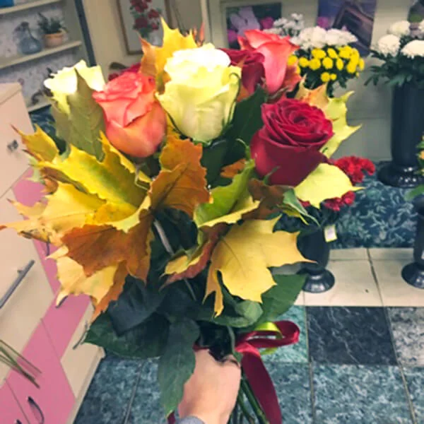 огромное вам спасибо за такой прекрасный осенний букет. Очень яркий, розы таких насыщенных цветов, красивые живые осенние листочки. очень все понравилось.
