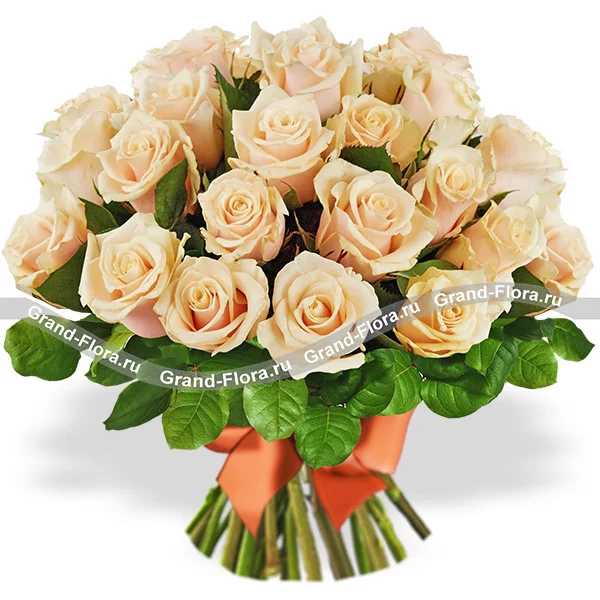 Роза кремовая (количество, выбранное Вами) 50-60 см., целлофан, лента.