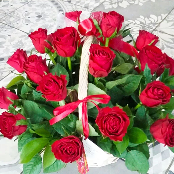 Я заказывала эту корзину красных роз с доставкой на дом. привезли вовремя, очень удобно что оплатила все картой на сайте заранее, и все привезли к точному времени! Супер!